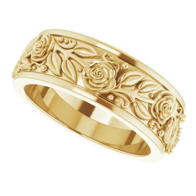14K Yellow 7 mm Floral Band Size 7