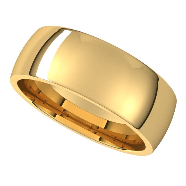 14K Yellow 7 mm Half Round Comfort Fit Light Band Size 10.5
