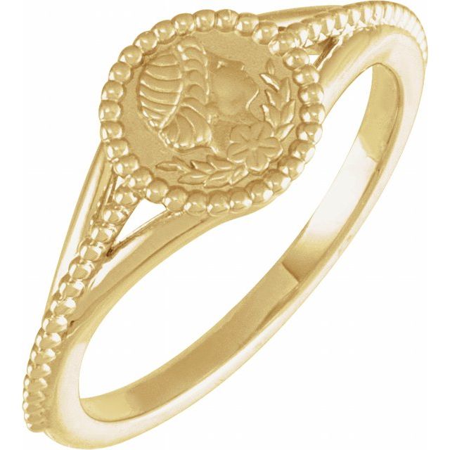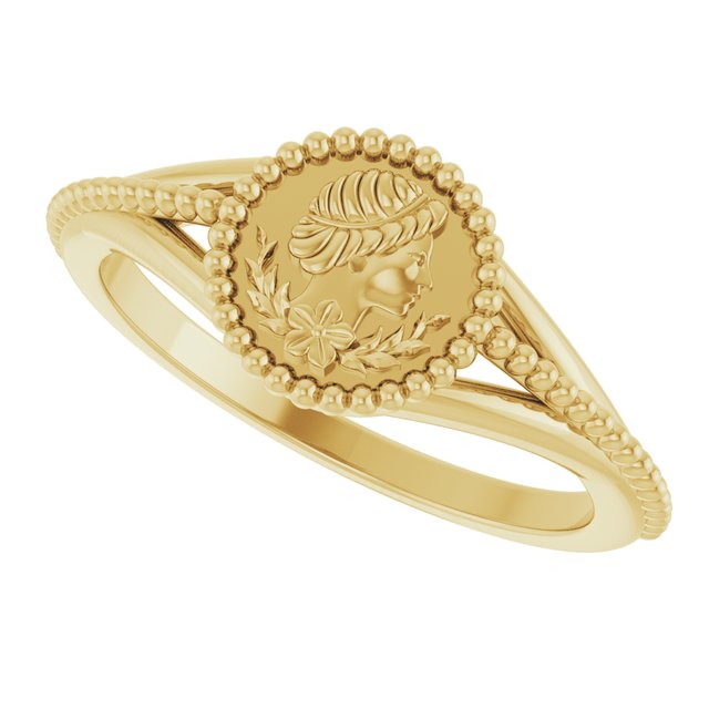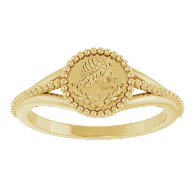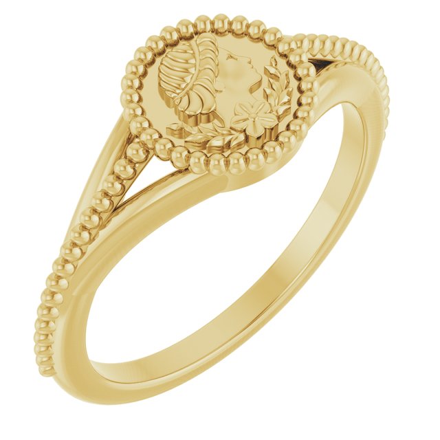 14k Yellow 8.7 Mm Beaded Cameo Medallion Ring