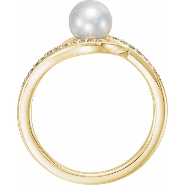 14k Yellow Cultured White Freshwater Pearl & 1/8 Ctw Natural Diamond Ring