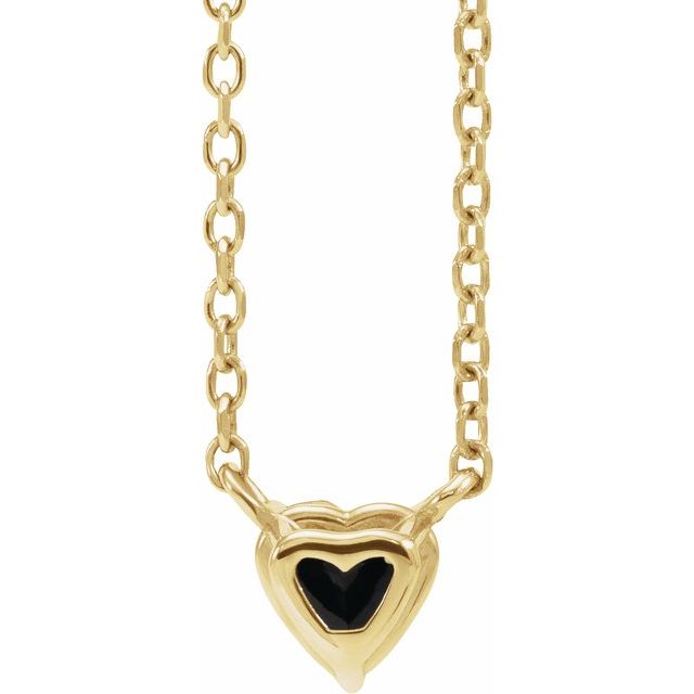 14K Yellow Natural Black Onyx Heart 16-18' Necklace