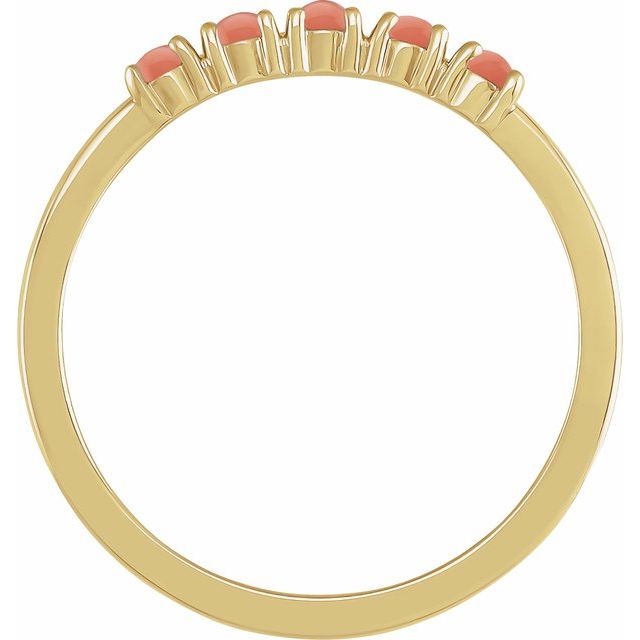 14K Yellow Natural Pink Coral Cabochon Stackable Ring