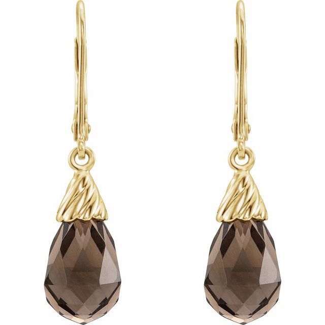 14K Yellow Natural Smoky Quartz Briolette Lever Back Earrings