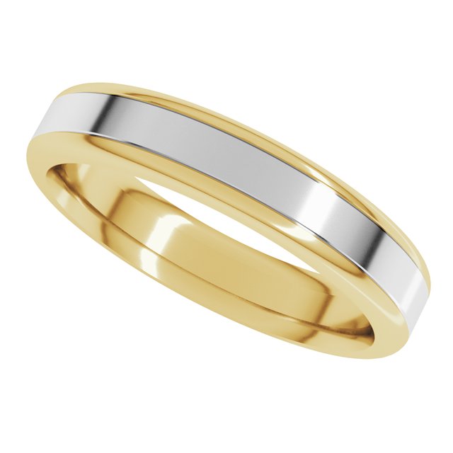 14K Yellow/White 4 mm Flat Band with Round Edge Size 10