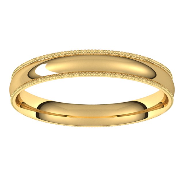 18k Yellow 3 Mm Milgrain Half Round Comfort Fit Light Band Size 12