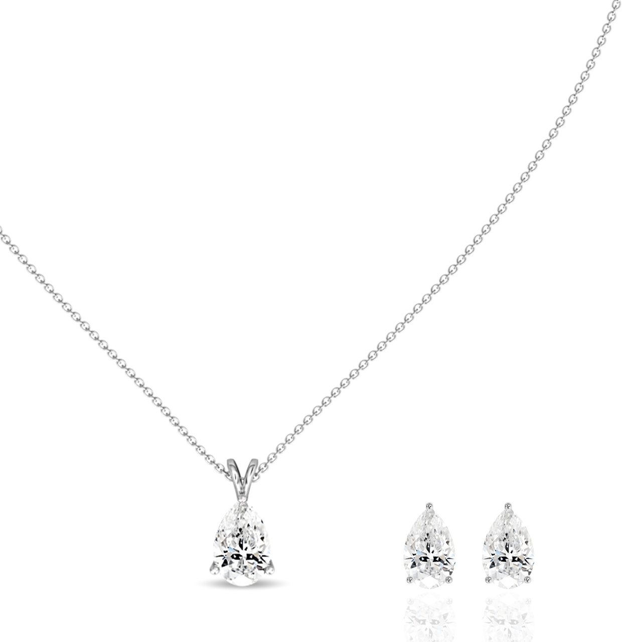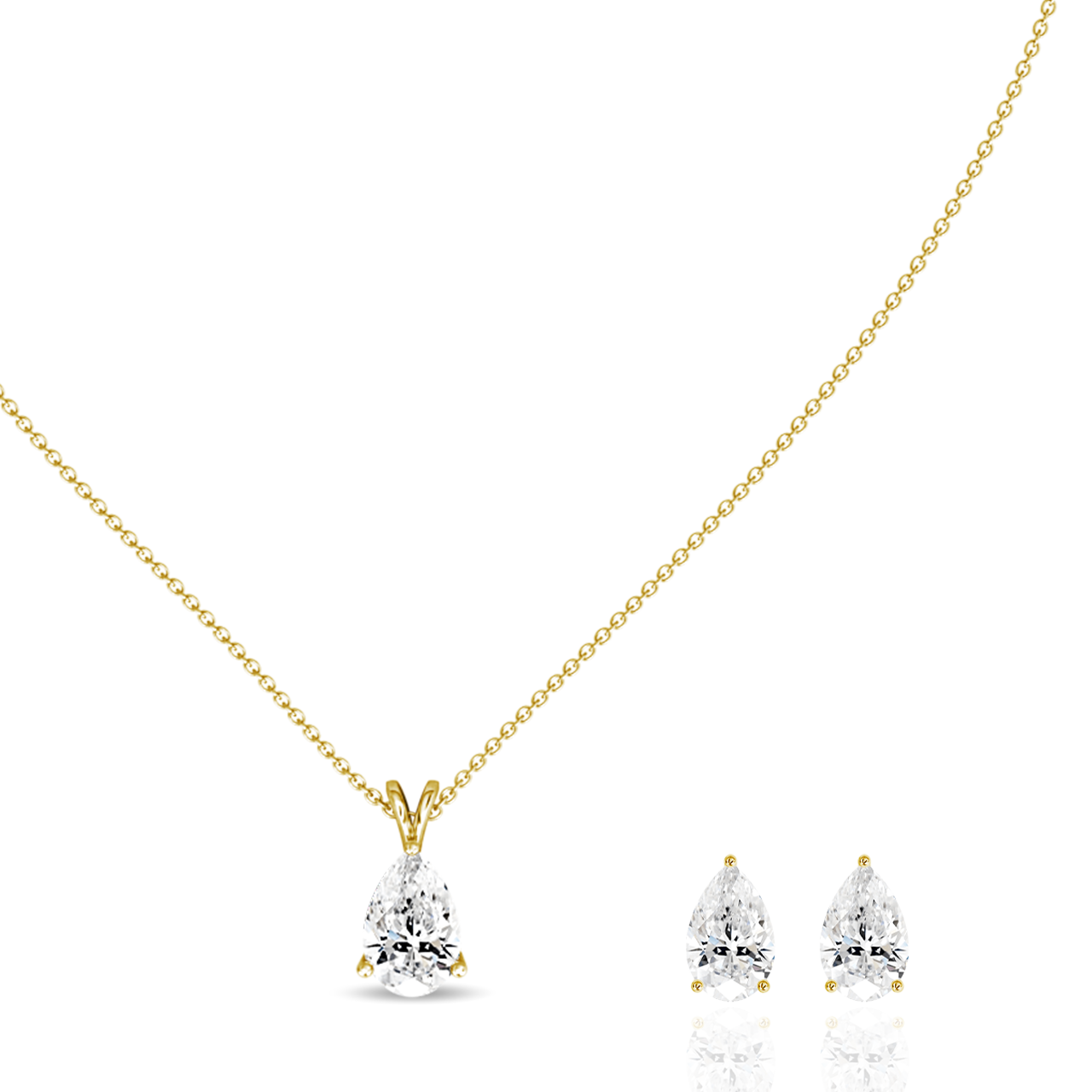 This exquisite pendant set features a stunning combination of GIA Certified Natural diamonds and luxurious 18k gold. The centerpiece is a 2.00ct pear brilliant diamond of F color and SI clarity, elegantly set in an 18k gold pendant and suspended from a 16" cable chain. Paired with matching pear-shaped natural diamond stud earrings, also crafted in 18k gold, the set offers a total diamond weight of 2.00 carats, providing a radiant and timeless sparkle. Each piece is designed to elevate your style with both luxury and simplicity, making it perfect for everyday elegance or special occasions. Secure push backings on the earrings ensure comfort and ease, making this set a sophisticated choice for any jewellery lover.