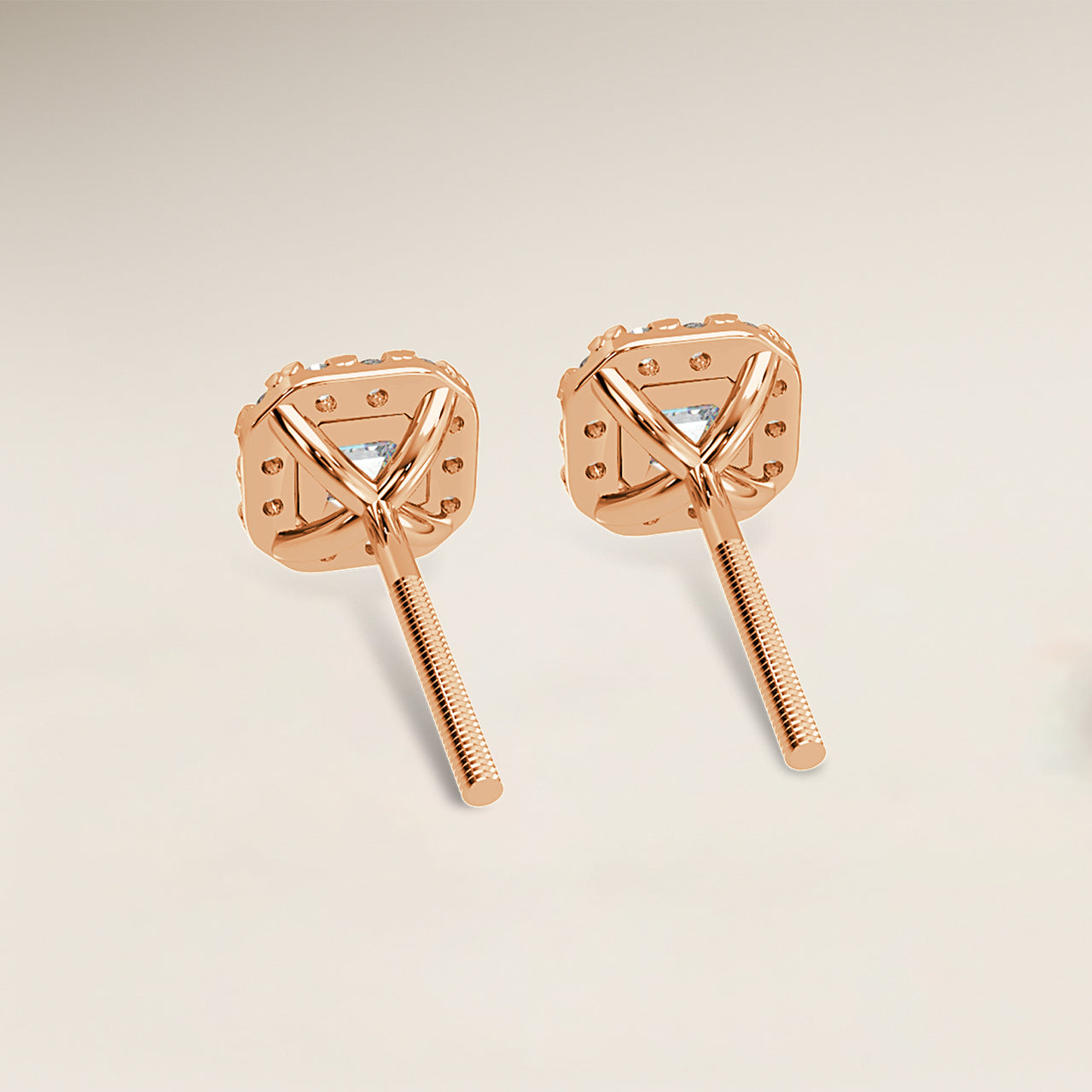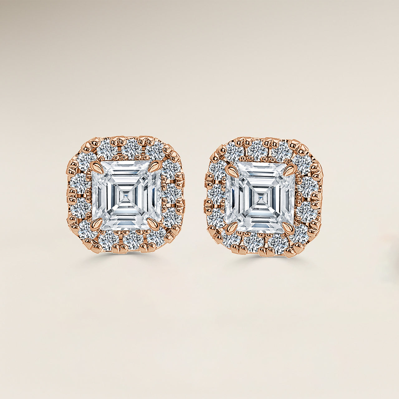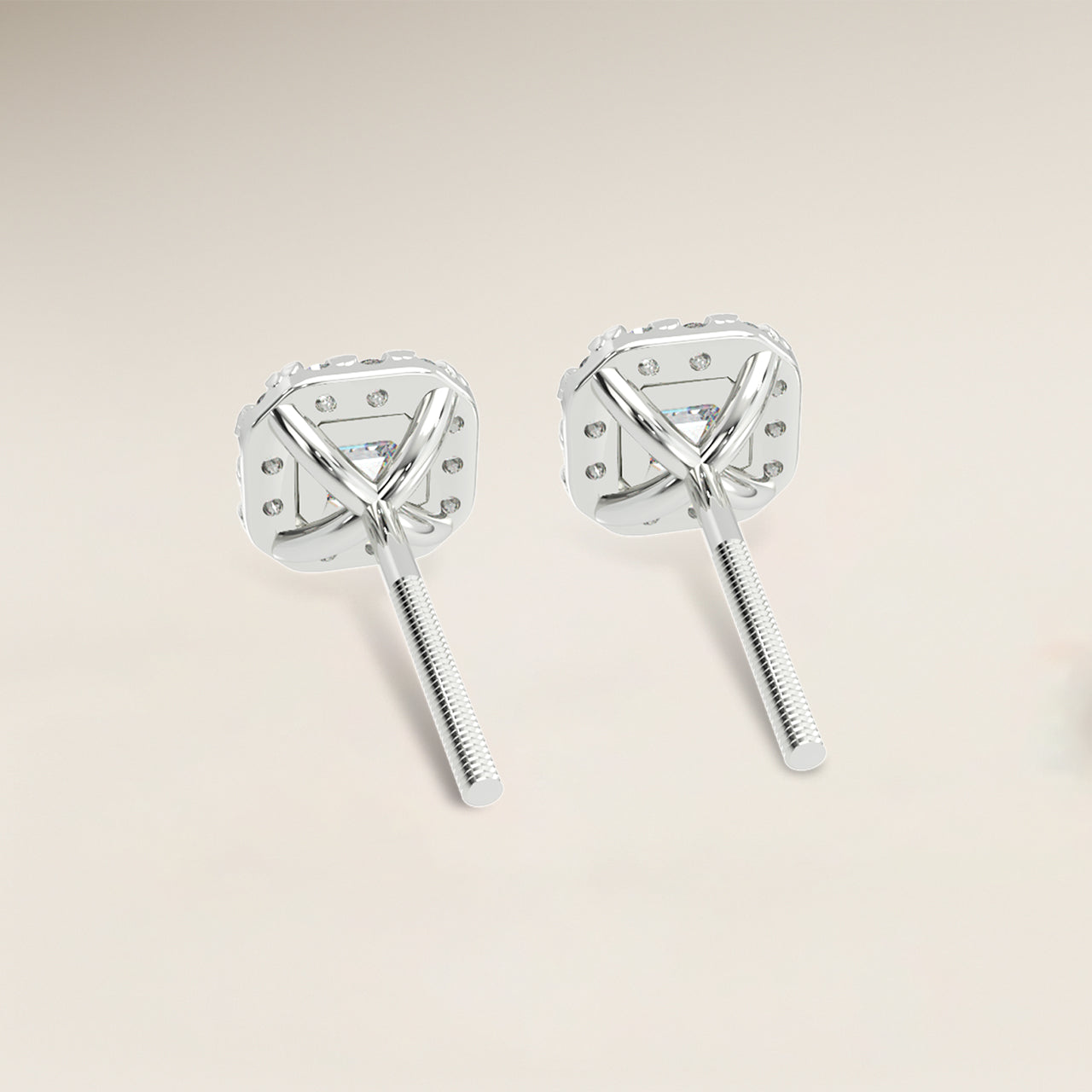 Asscher Single Halo Earrings