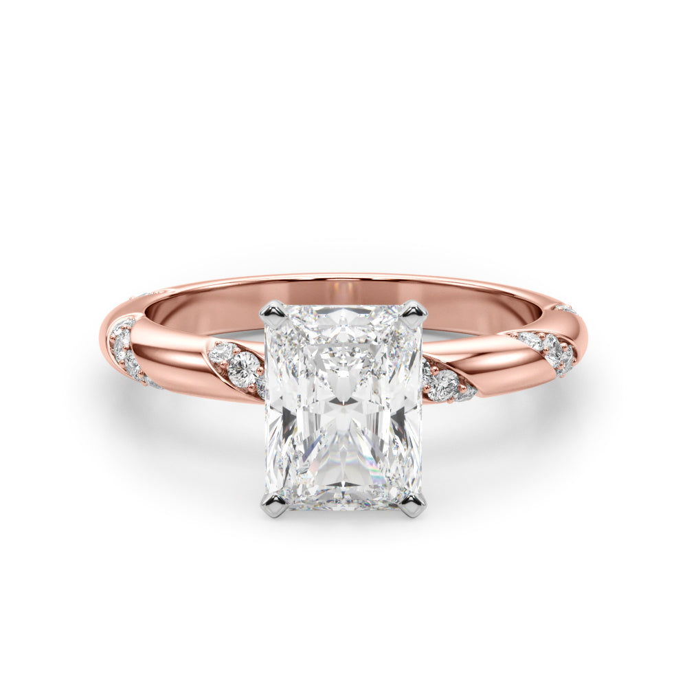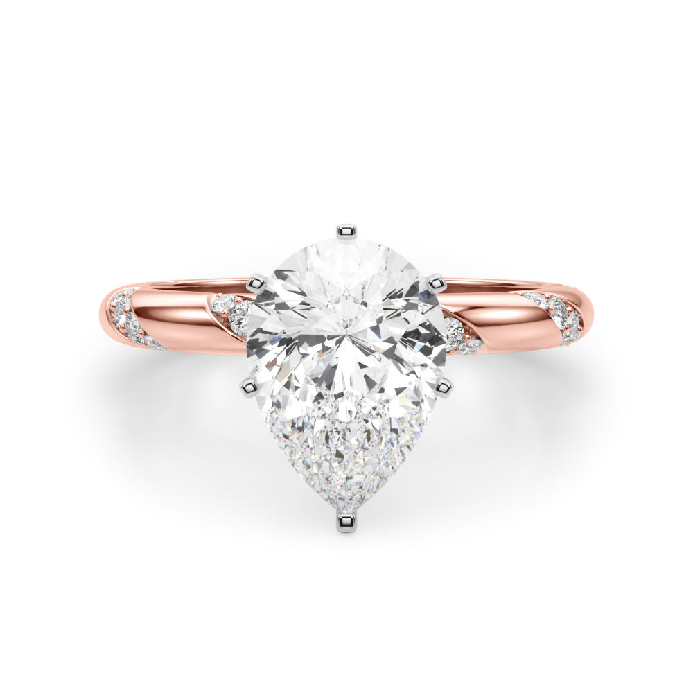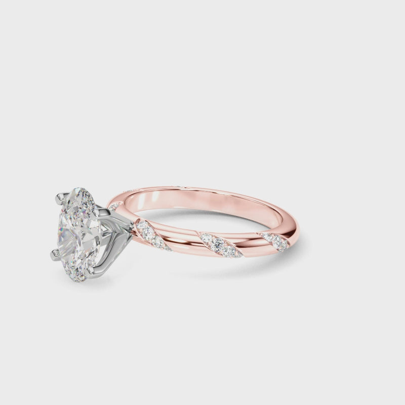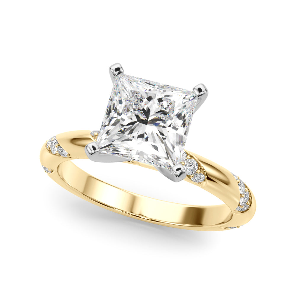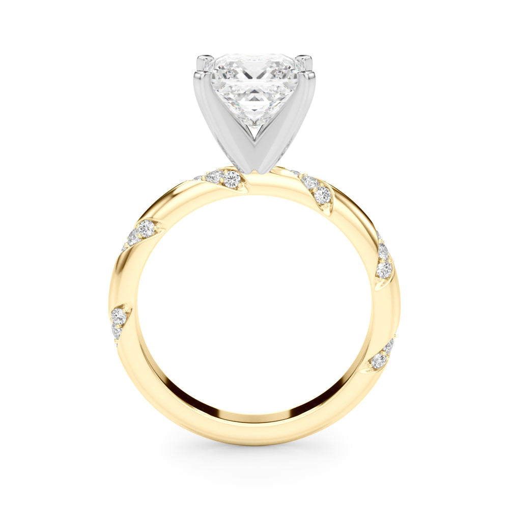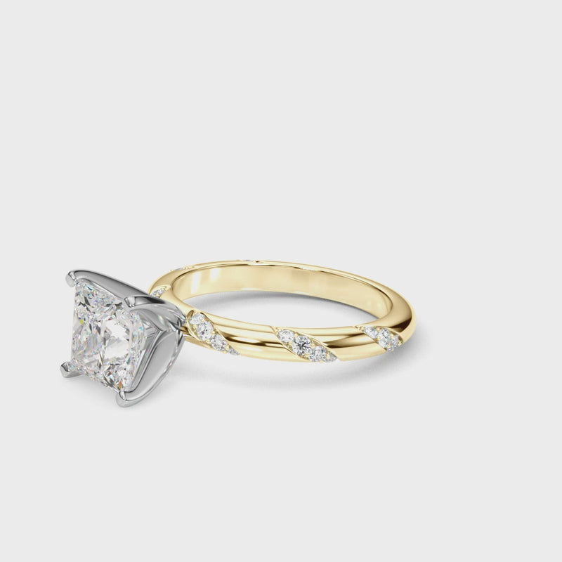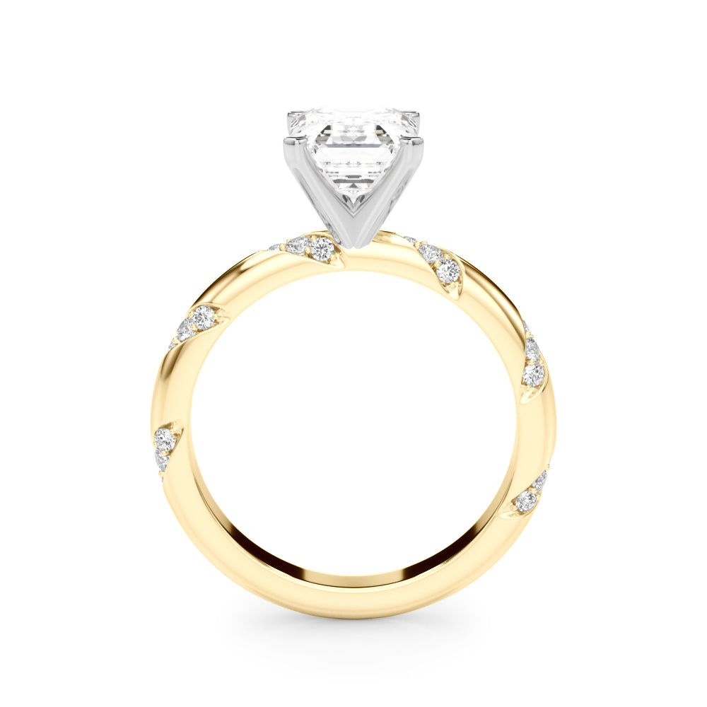 A graceful harmony of motion and brilliance, the Aurora Twist ring features a polished gold band with delicately angled diamond accents, reminiscent of a spiral of light. The sleek two-tone setting elevates the central stone, creating an eye-catching contrast that blends modern allure with timeless charm. A radiant expression of individuality and elegance.