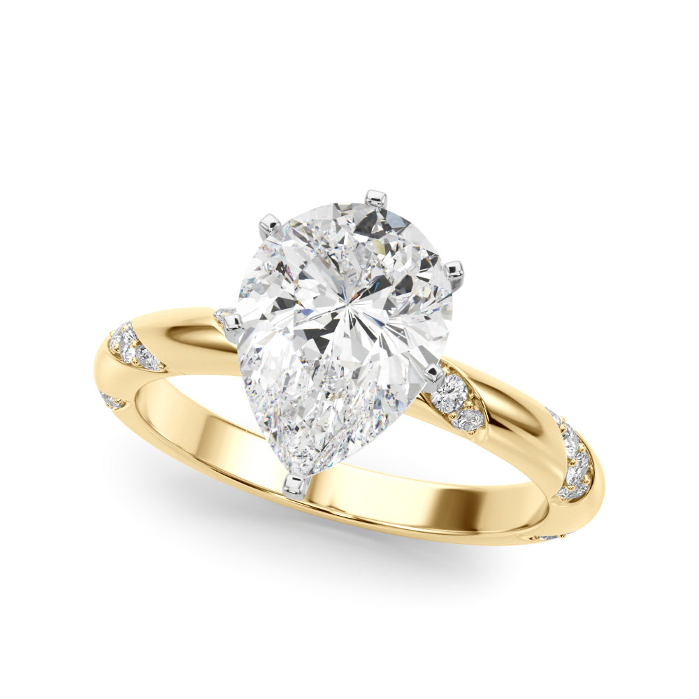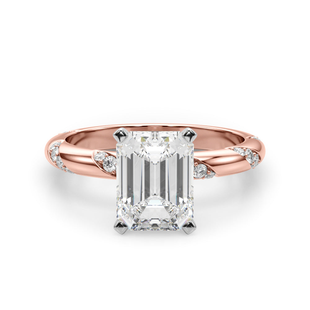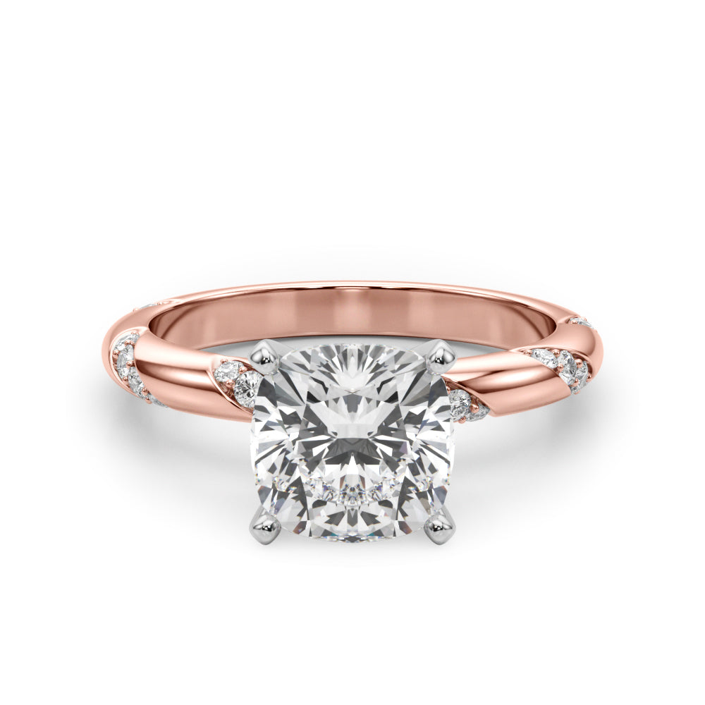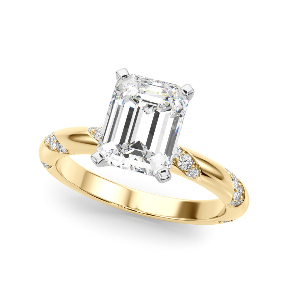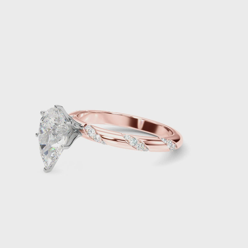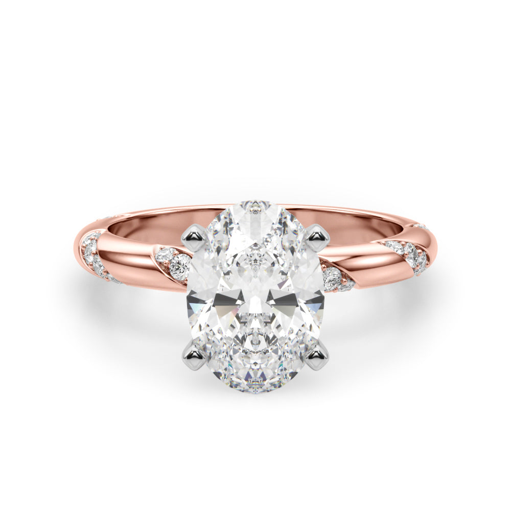 A graceful harmony of motion and brilliance, the Aurora Twist ring features a polished gold band with delicately angled diamond accents, reminiscent of a spiral of light. The sleek two-tone setting elevates the central stone, creating an eye-catching contrast that blends modern allure with timeless charm. A radiant expression of individuality and elegance.