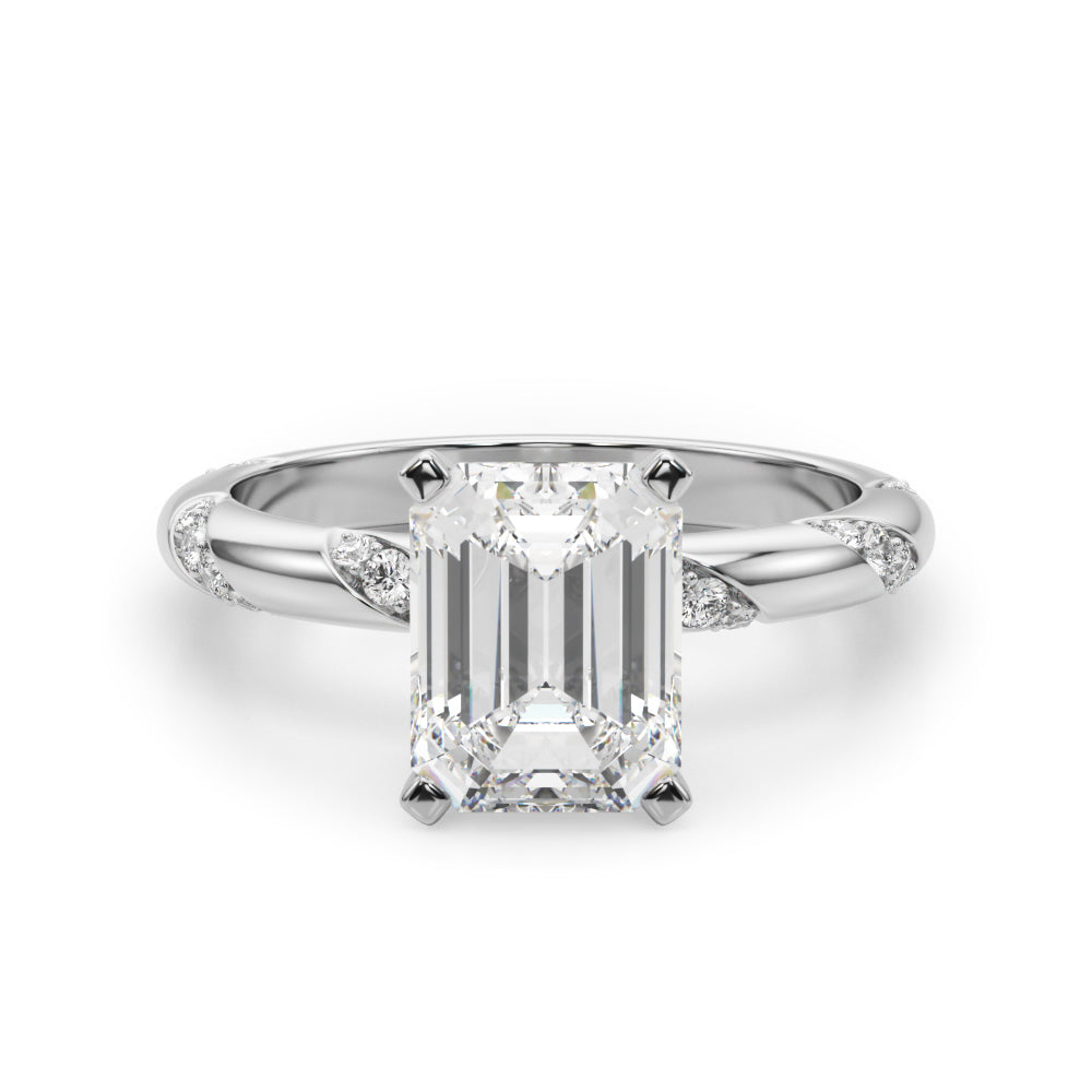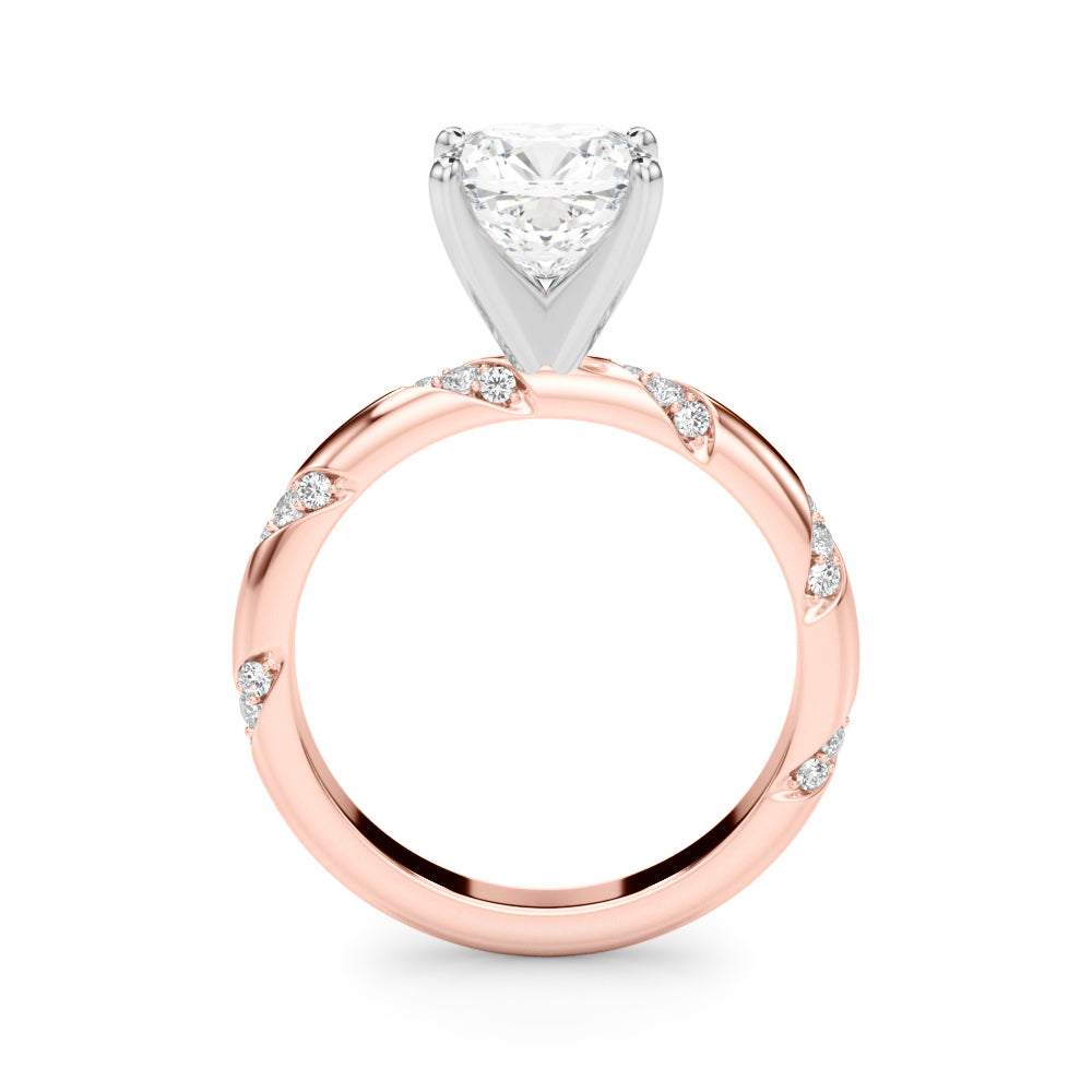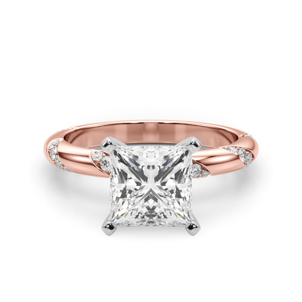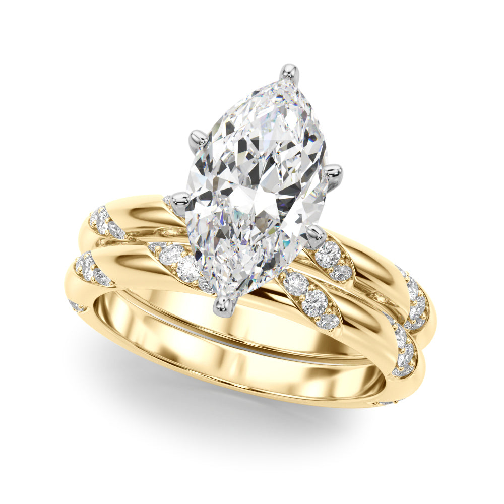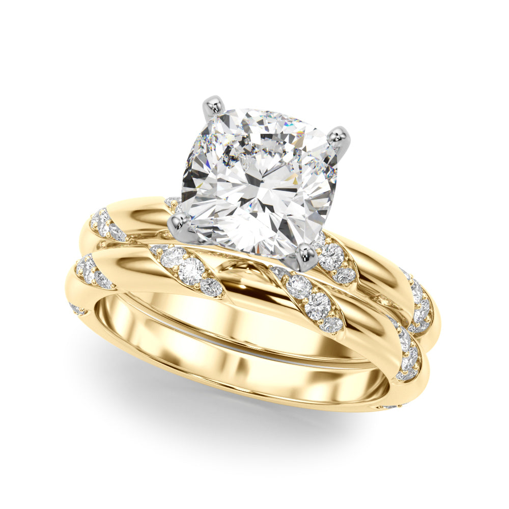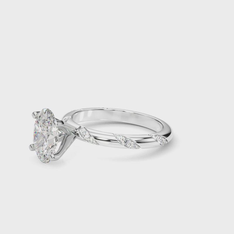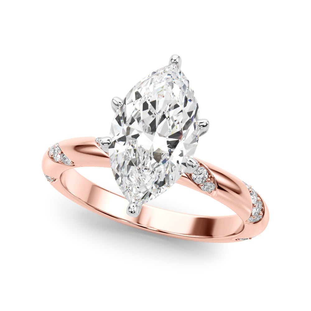 A graceful harmony of motion and brilliance, the Aurora Twist ring features a polished gold band with delicately angled diamond accents, reminiscent of a spiral of light. The sleek two-tone setting elevates the central stone, creating an eye-catching contrast that blends modern allure with timeless charm. A radiant expression of individuality and elegance.