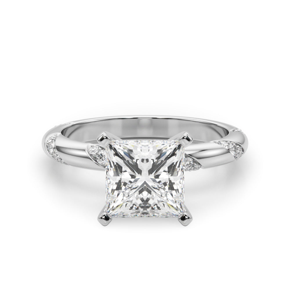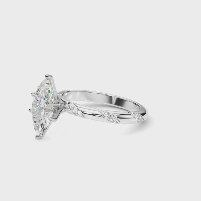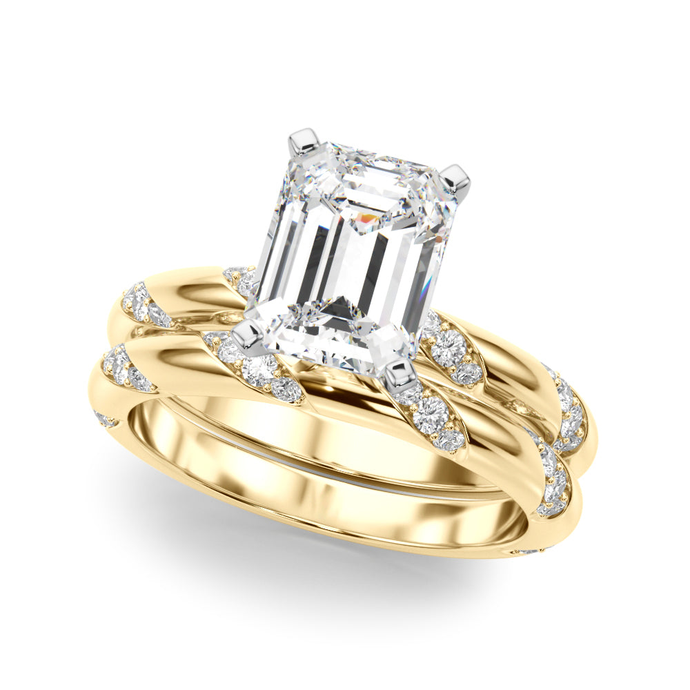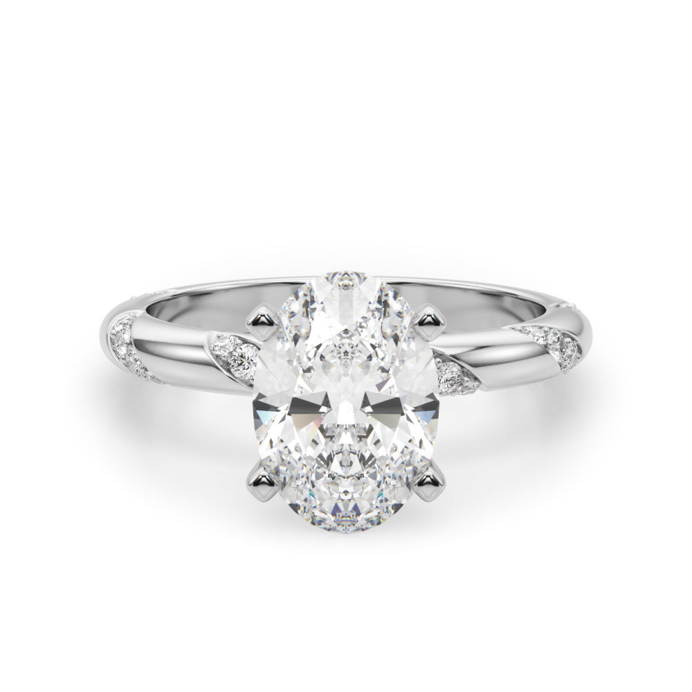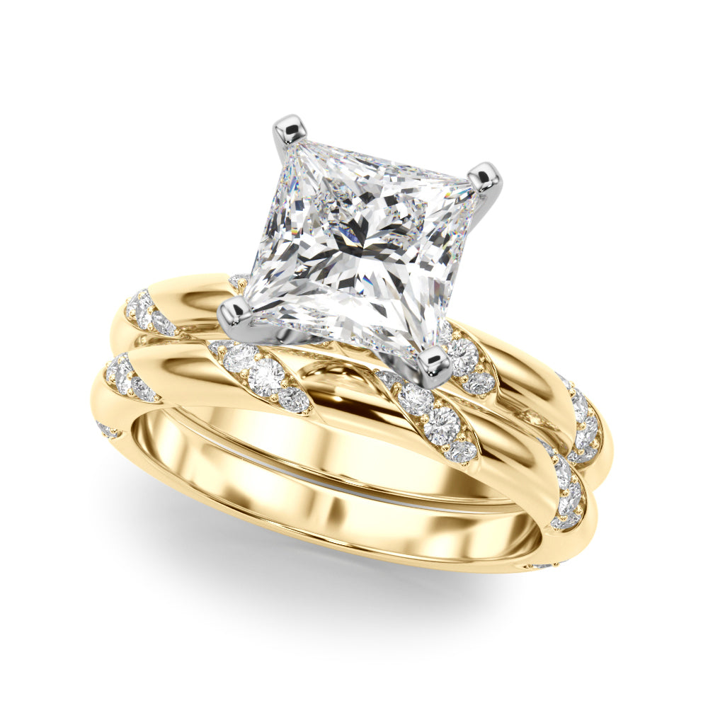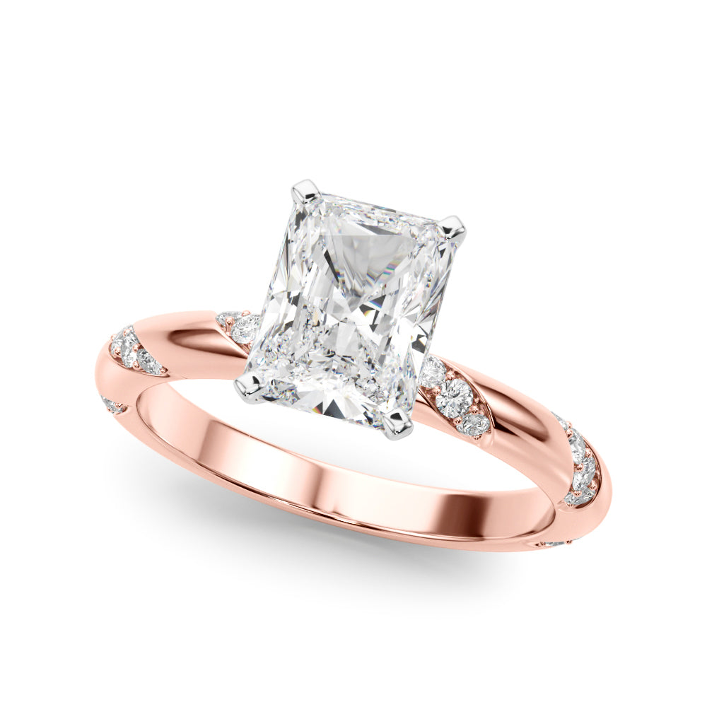 A graceful harmony of motion and brilliance, the Aurora Twist ring features a polished gold band with delicately angled diamond accents, reminiscent of a spiral of light. The sleek two-tone setting elevates the central stone, creating an eye-catching contrast that blends modern allure with timeless charm. A radiant expression of individuality and elegance.