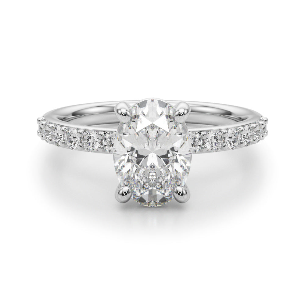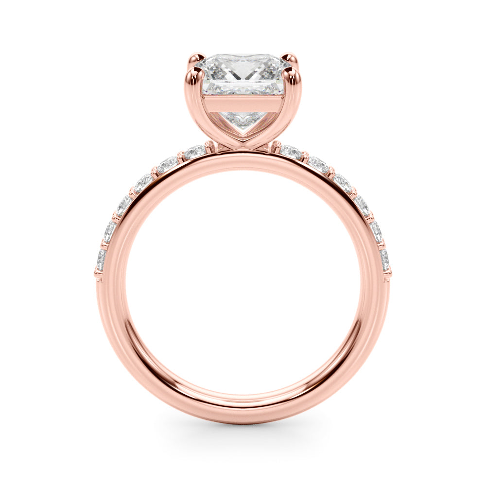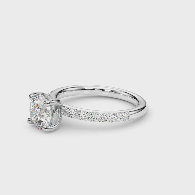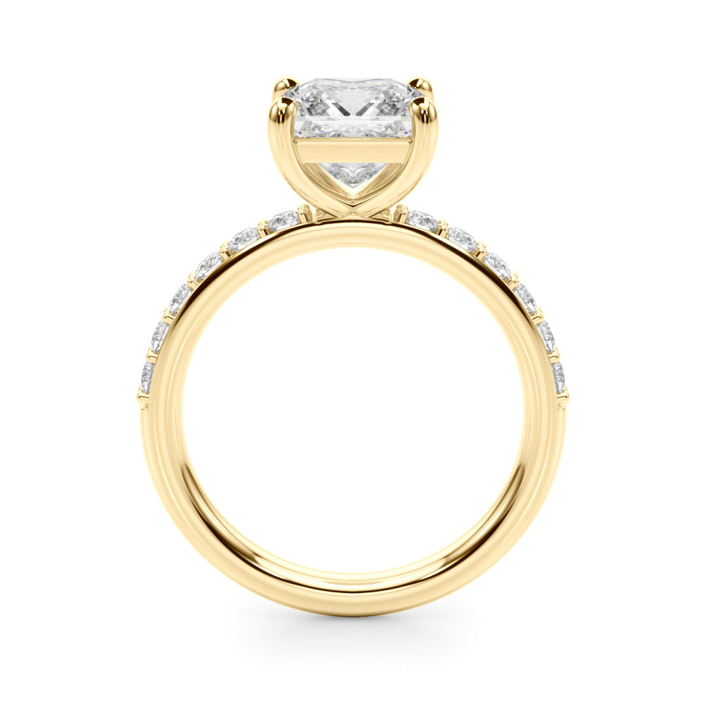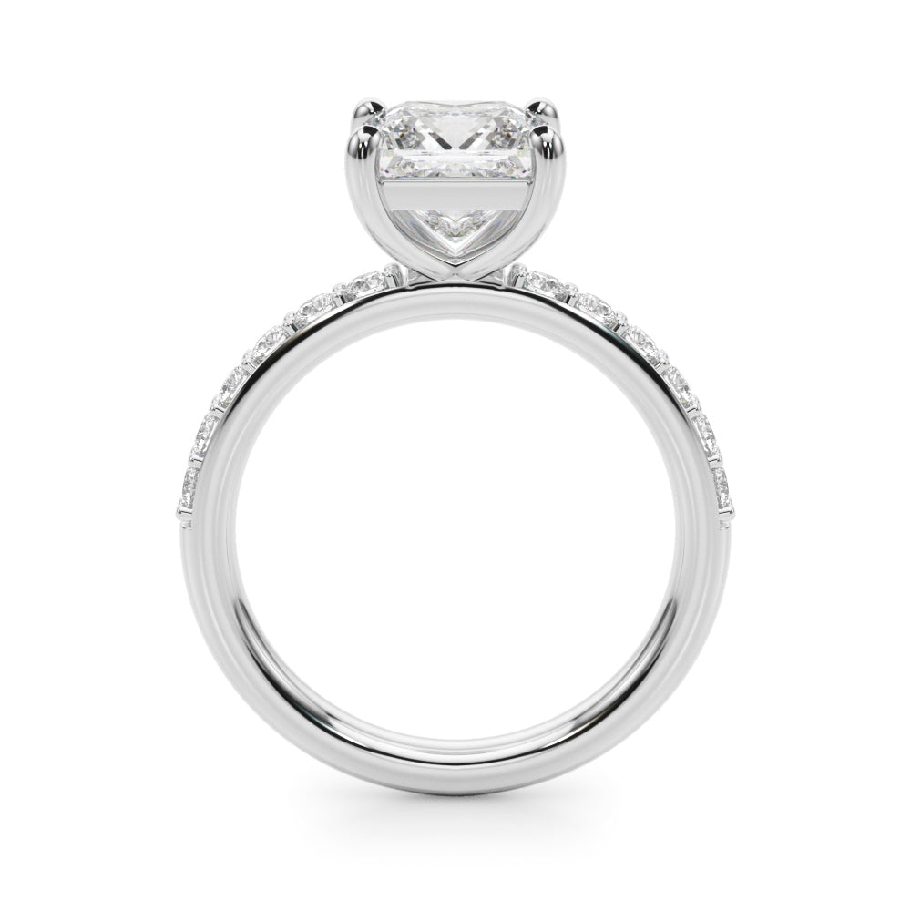 The Celeste Pavé Ring features a refined band accented with a continuous row of sparkling stones, leading to a striking center setting. Its clean lines and carefully set details create a sleek, radiant design that stands out with understated elegance.