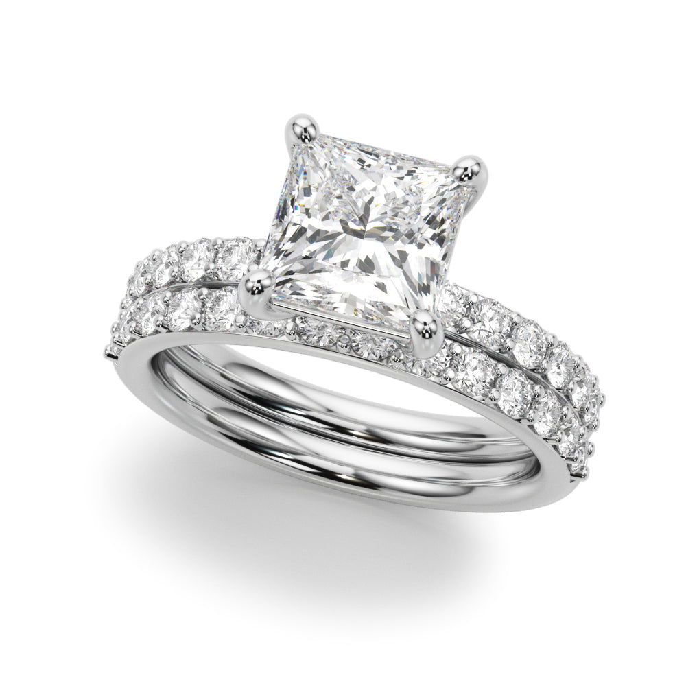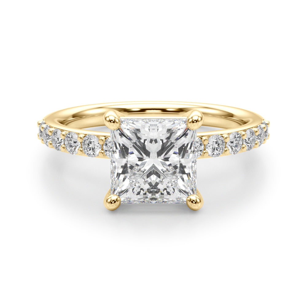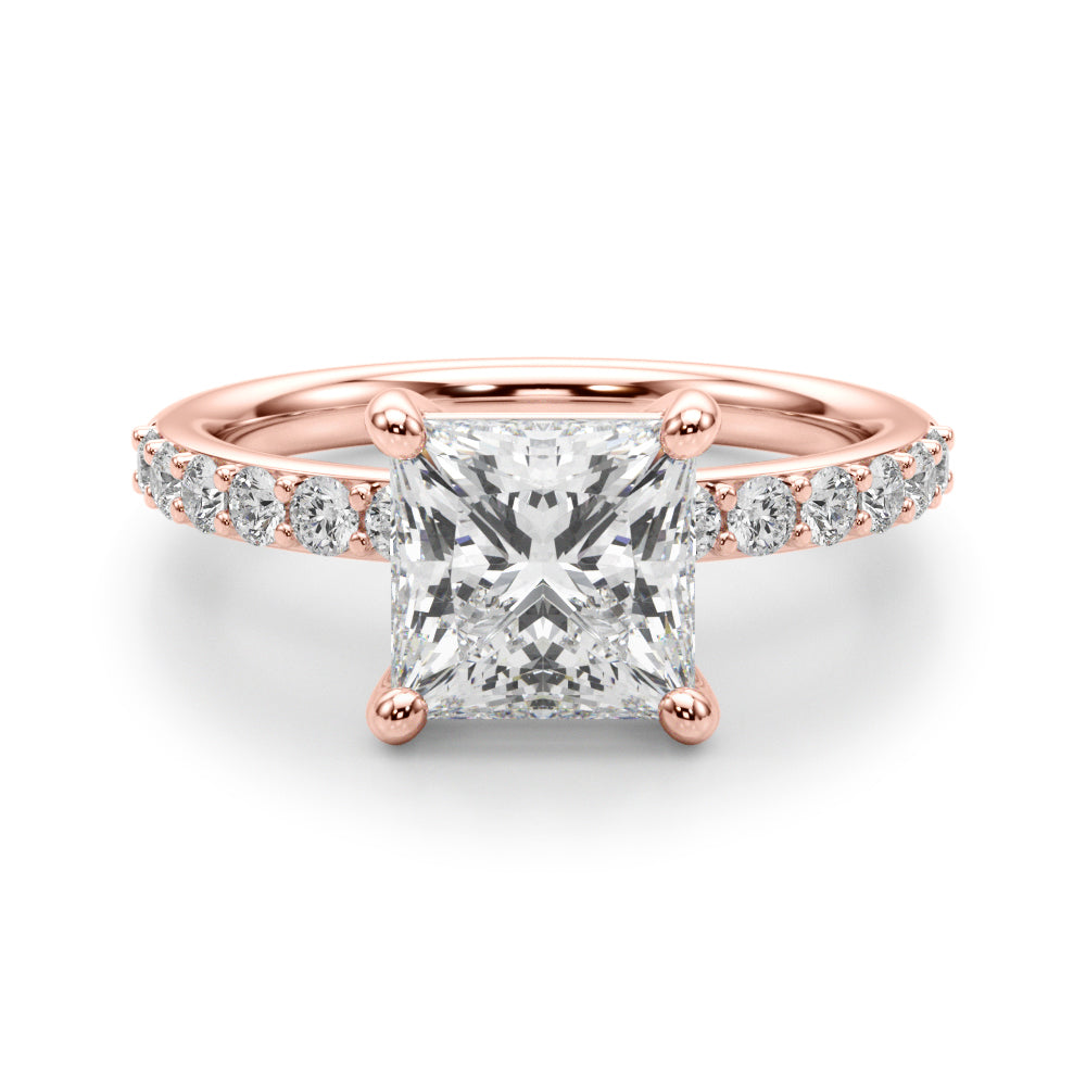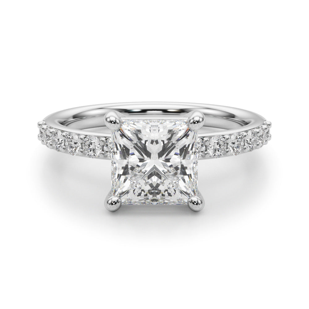 The Celeste Pavé Ring features a refined band accented with a continuous row of sparkling stones, leading to a striking center setting. Its clean lines and carefully set details create a sleek, radiant design that stands out with understated elegance.