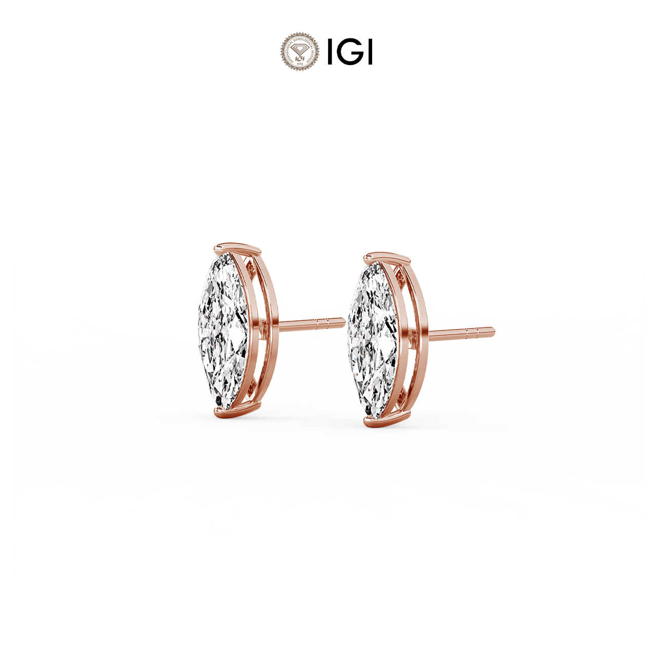 Elevate your elegance with these stunning Marquise-shaped lab-grown diamond stud earrings. Crafted in 18K gold, these earrings feature a total diamond weight of 0.50 carats, offering a sustainable and radiant sparkle. The Marquise diamonds are carefully set to enhance their brilliance, creating a sophisticated and timeless look. With secure push backings, these earrings provide a comfortable and effortless wear, perfect for both everyday chic and special occasions.