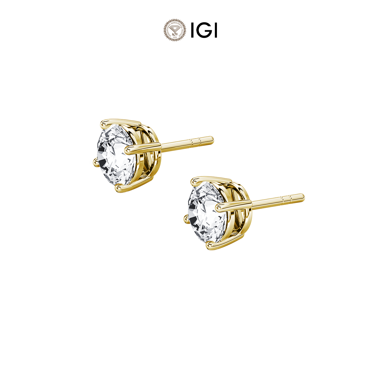 Elevate your elegance with these stunning Round-shaped lab-grown diamond stud earrings. Crafted in 18K gold, these earrings feature a total diamond weight of 0.75 carats, offering a sustainable and radiant sparkle. The round diamonds are carefully set to enhance their brilliance, creating a sophisticated and timeless look. With secure push backings, these earrings provide a comfortable and effortless wear, perfect for both everyday chic and special occasions.