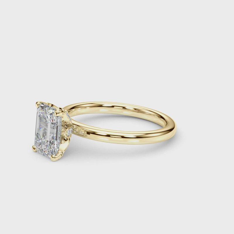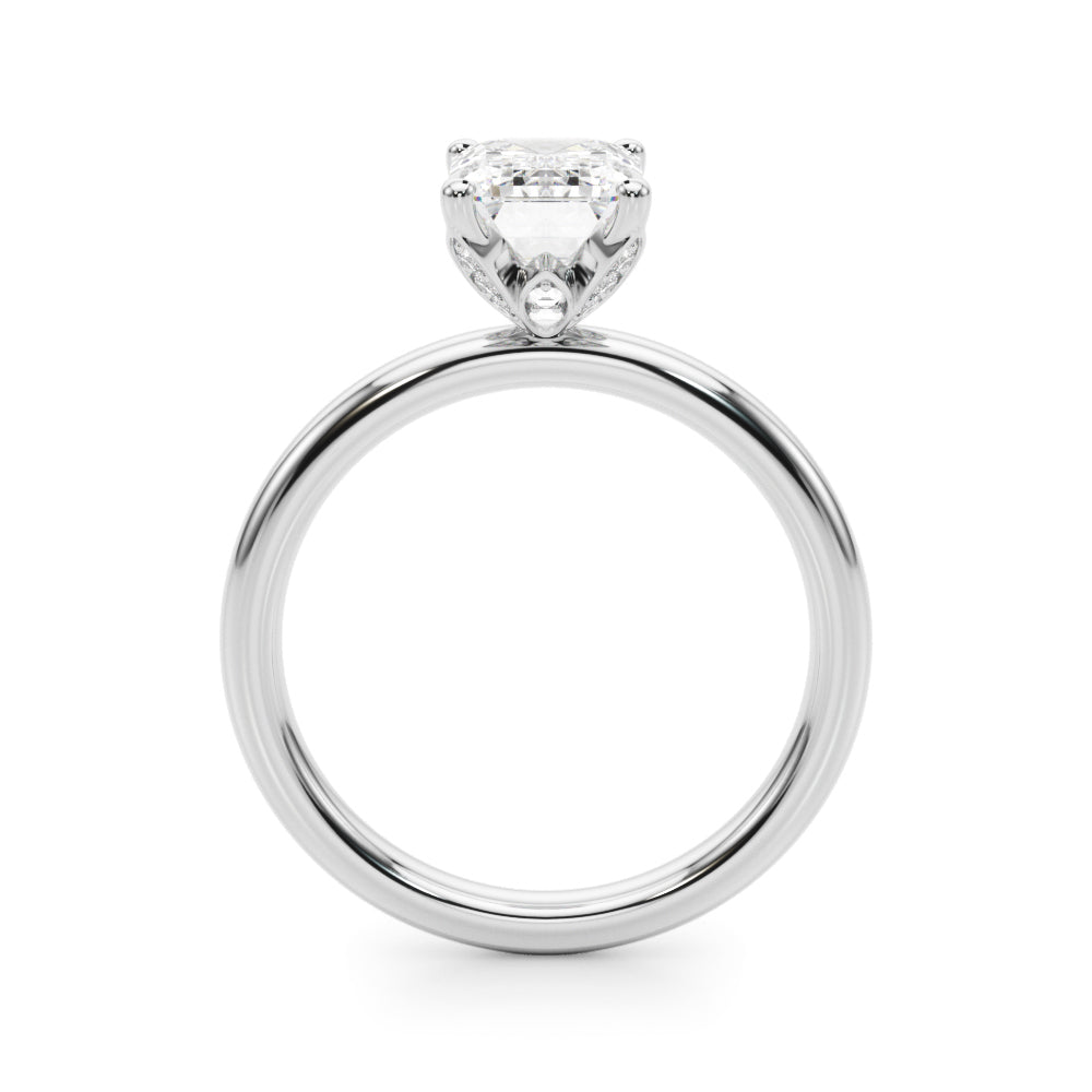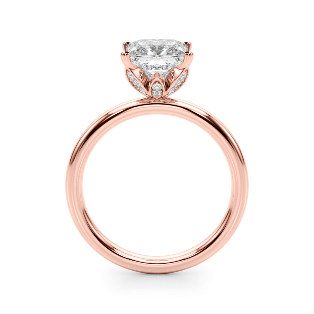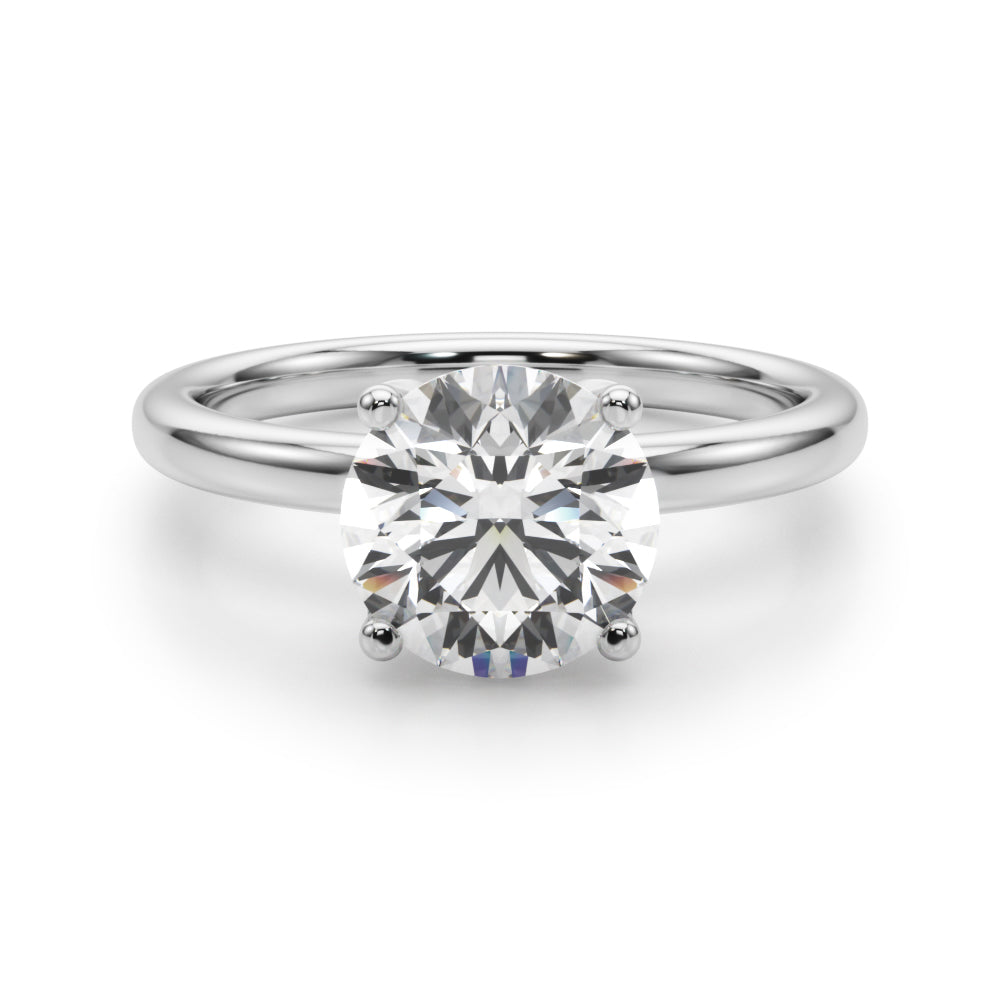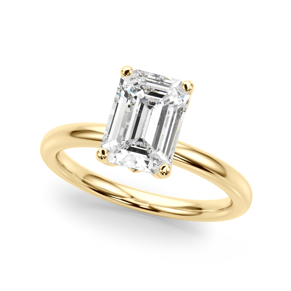 Classic elegance meets refined radiance in the Solis Charm ring. A single brilliant diamond rests in a timeless four-prong setting, elevated above a smooth, polished gold band. A hidden diamond detail beneath the center stone adds a subtle touch of intrigue—perfect for those who appreciate quiet luxury and enduring style.