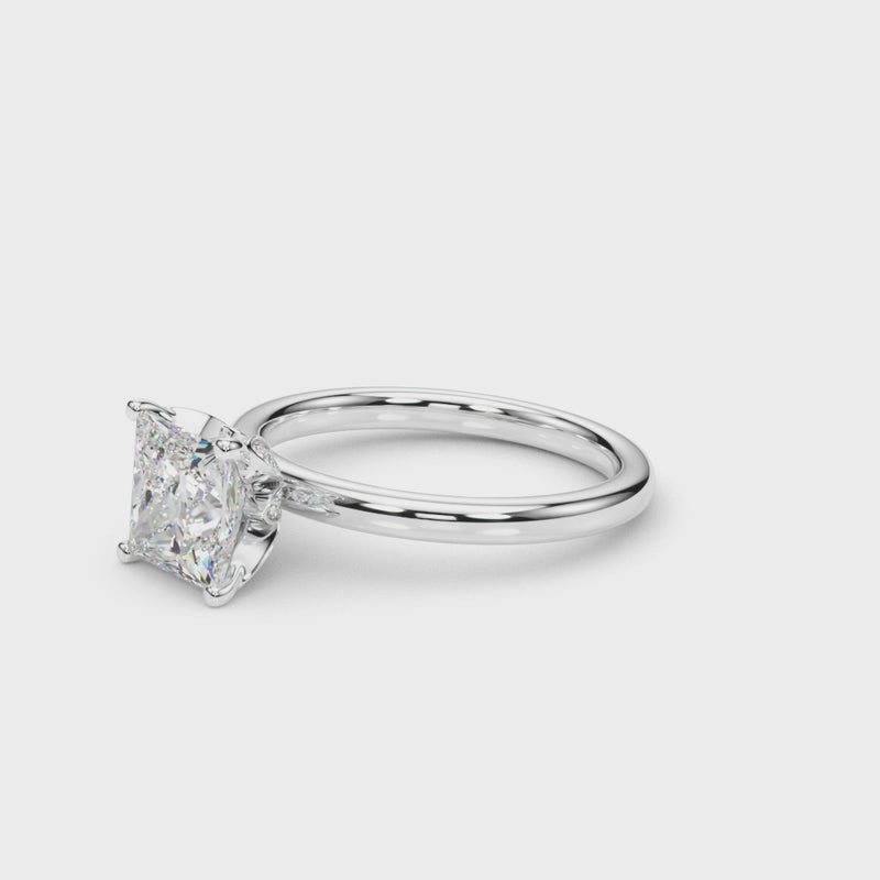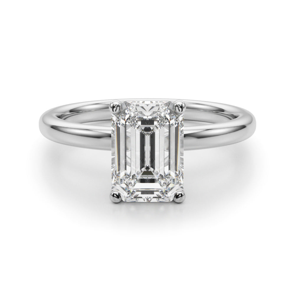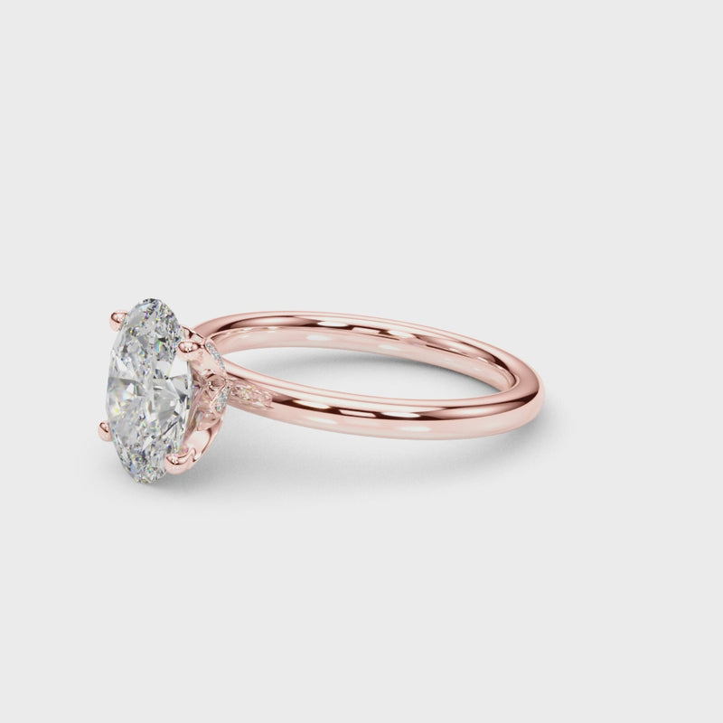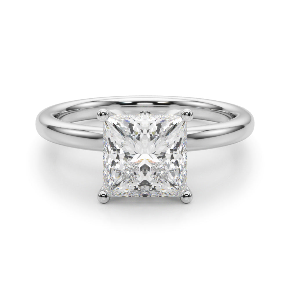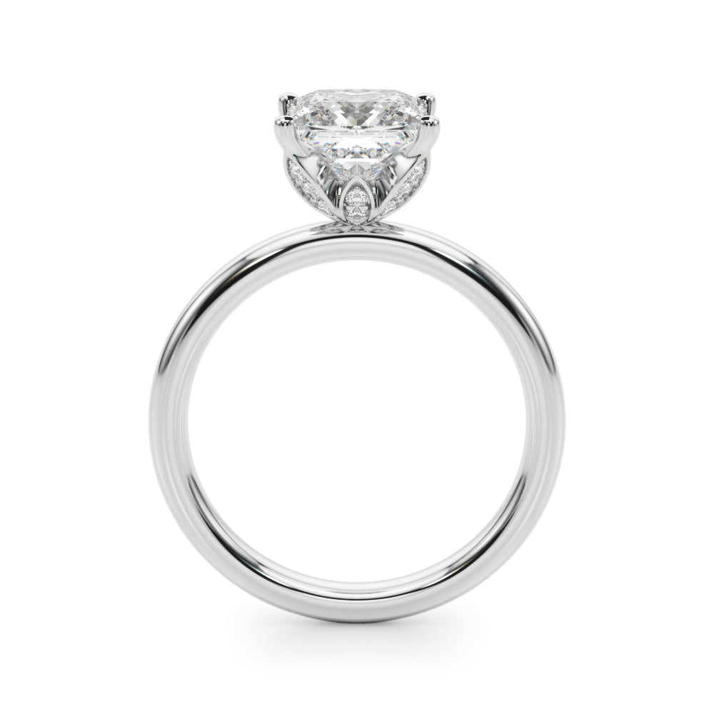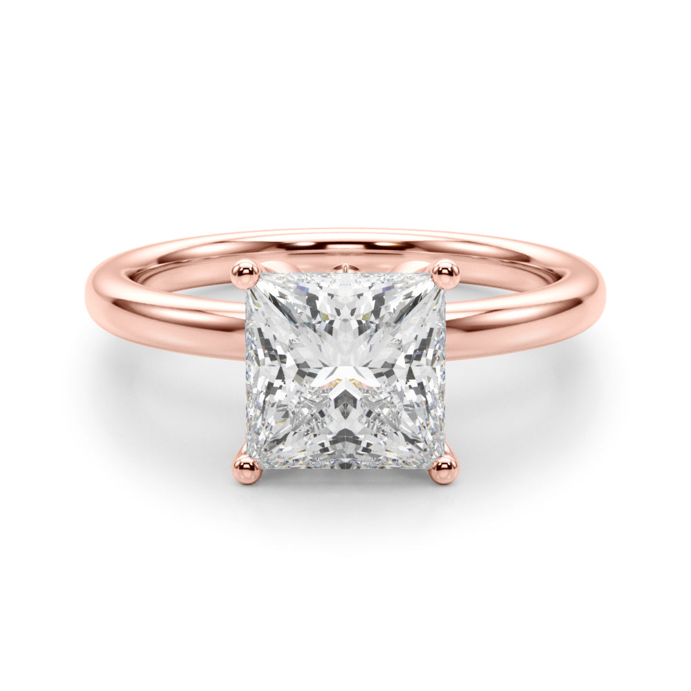 Classic elegance meets refined radiance in the Solis Charm ring. A single brilliant diamond rests in a timeless four-prong setting, elevated above a smooth, polished gold band. A hidden diamond detail beneath the center stone adds a subtle touch of intrigue—perfect for those who appreciate quiet luxury and enduring style.