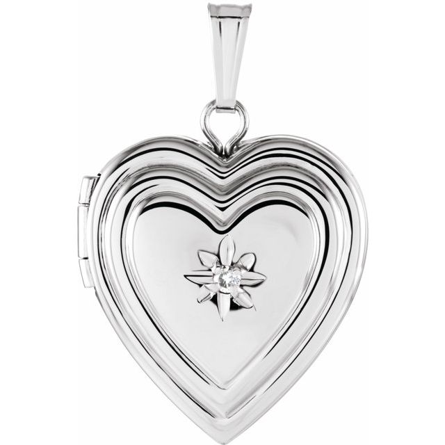 Sterling Silver .01 CTW Natural Diamond 15 mm Heart Locket
