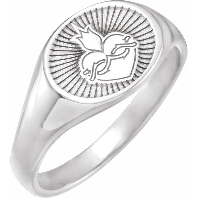 Sterling Silver 12.3x9.4 mm Sacred Heart Signet Ring