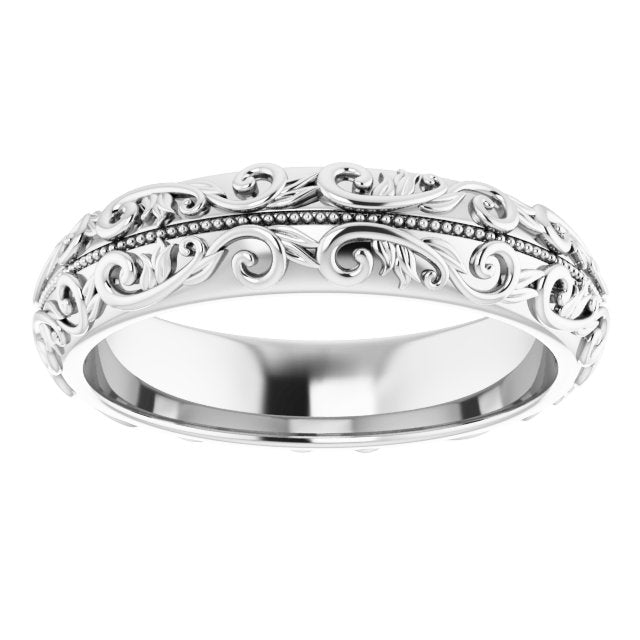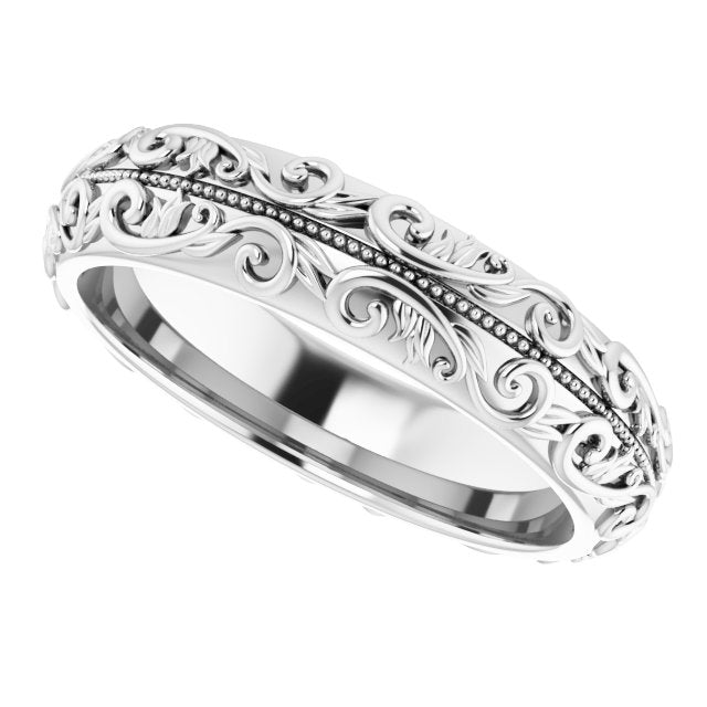 Sterling Silver 5 mm Sculptural Band with Milgrain Size 8