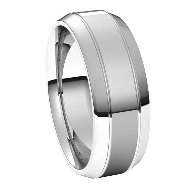 Sterling Silver 7 mm Grooved Beveled-Edge Band Size 11