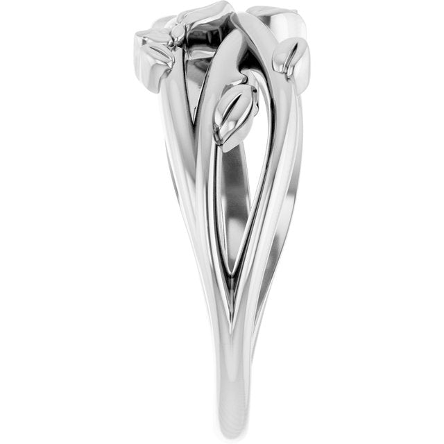 Sterling Silver Floral Criss-Cross Ring