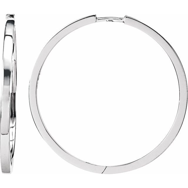 Sterling Silver Square Tube Hinged 32.8 mm Hoop Earrings